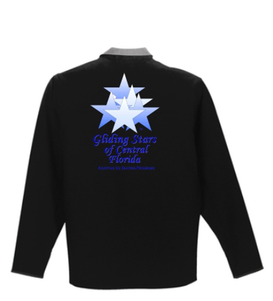 Durable and comfortable, this soft shell jacket features a digital impression on the front and an embroidered logo on the back, perfect for staying warm and showcasing support for Gliding Stars.